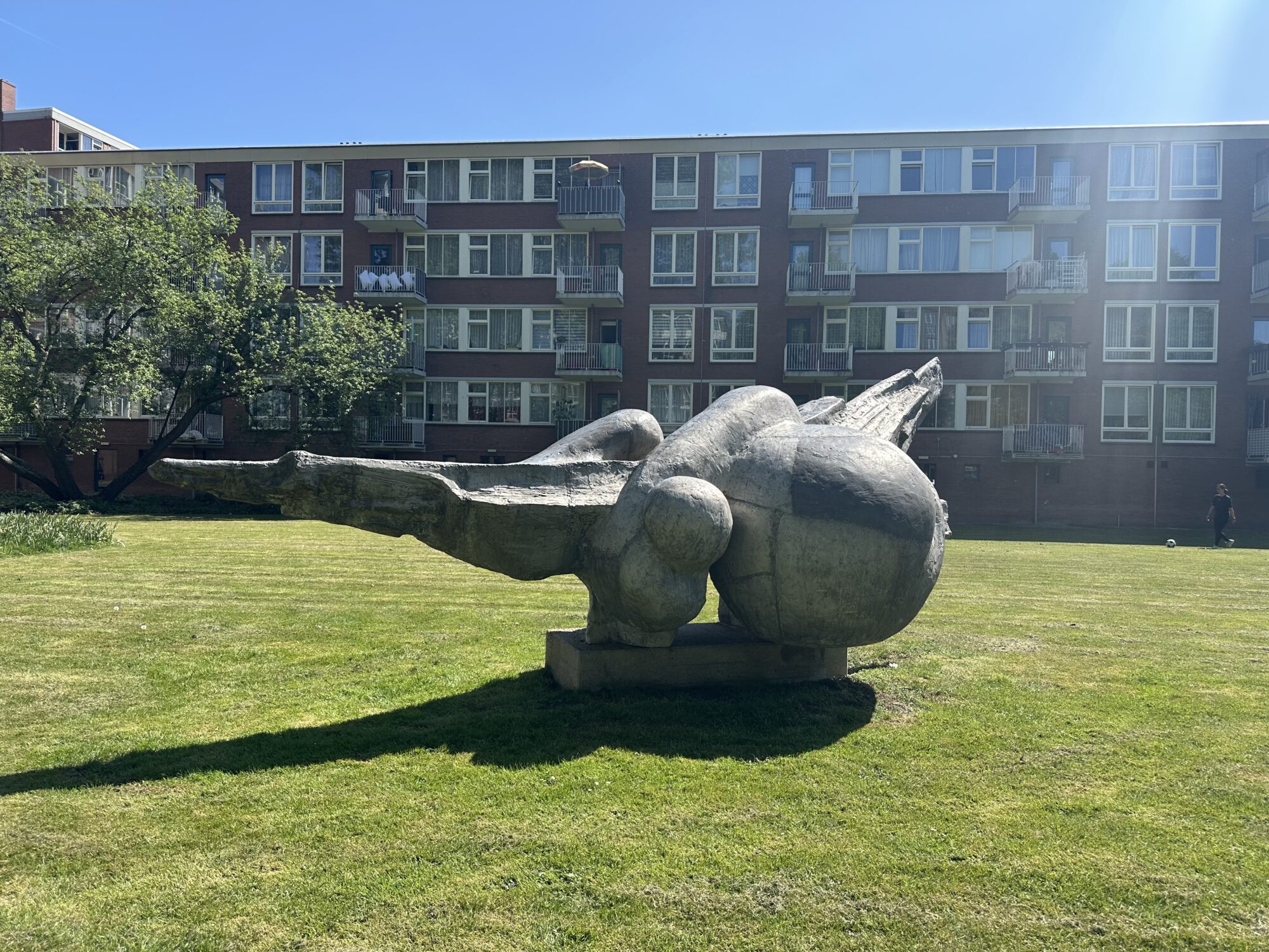 Tussen de Jan Voermanstraat en Jan Tooropstraat ligt een vijf meter lang aluminium lichaam: Erotica van Erwin de Vries. Deze ode aan de erotiek werd in 1973 onthuld, en belichaamt de levensdrift die de kunstenaar als essentie van het bestaan zag. Ronde en hoekige vormen vloeien in elkaar over, een gestileerde vrouwelijke figuur die kracht en overgave tegelijk uitstraalt.